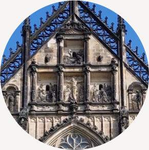 HEILIGENFIGUREN AM TURM DER MARTINIKIRCHE.