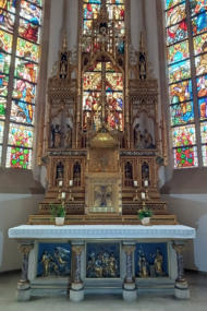 ausgestattet. Der hölzerne Altaraufbau stammt lt.