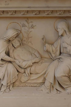 Reliefs in den Zelebrationsaltar eingepasst (Foto rechts).